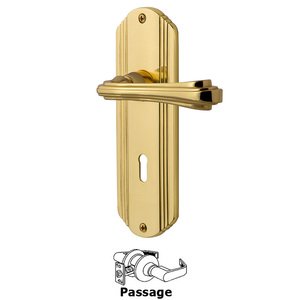 Deco Collection - Deco Plate Passage with Keyhole and Fleur Lever in Polished Brass by Nostalgic Warehouse - 765894 | MyKnobs