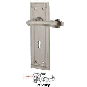 Mission Collection - Mission Plate Privacy with Keyhole and Fleur Lever in Satin Nickel by Nostalgic Warehouse - 766905 | MyKnobs
