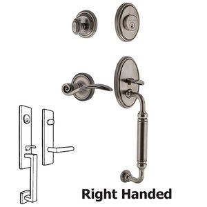 Nostalgic Warehouse 767963 Classic Plate C Grip with Right-Handed Swan Lever Entry Set, Backset Size: 2-3/4", Antique Pewter