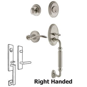 Nostalgic Warehouse 767990 Classic Plate F Grip with Right-Handed Swan Lever Entry Set, Backset Size: 2-3/4", Satin Nickel