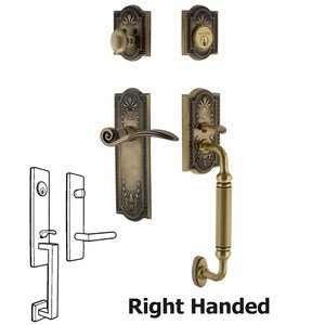 Nostalgic Warehouse 768189 Meadows Plate C Grip with Right-Handed Swan Lever Entry Set, Backset Size: 2-3/8", Antique Brass