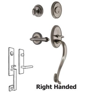 Nostalgic Warehouse 768707 Classic Plate S Grip with Right-Handed Fleur Lever Entry Set, Backset Size: 2-3/8", Antique Pewter