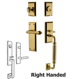 Nostalgic Warehouse 768989 New York Plate F Grip with Right-Handed Fleur Lever Entry Set, Backset Size: 2-3/4", Lifetime Brass