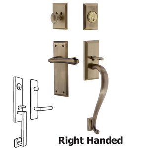 Nostalgic Warehouse 769032 New York Plate S Grip with Right-Handed Fleur Lever Entry Set, Backset Size: 2-3/8", Antique Brass