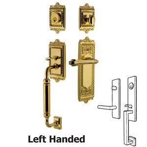 Nostalgic Warehouse 770145 Egg & Dart Plate C Grip with Left-Handed Fleur Lever Entry Set, Backset Size: 2-3/4", Lifetime Brass