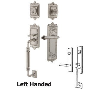 Nostalgic Warehouse 770159 Egg & Dart Plate F Grip with Left-Handed Fleur Lever Entry Set, Backset Size: 2-3/4", Satin Nickel