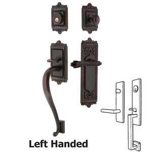 Nostalgic Warehouse 770165 Egg & Dart Plate S Grip with Left-Handed Fleur Lever Entry Set, Backset Size: 2-3/4", Timeless Bronze