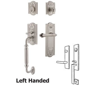 Nostalgic Warehouse 770365 Meadows Plate F Grip with Left-Handed Fleur Lever Entry Set, Backset Size: 2-3/4", Satin Nickel