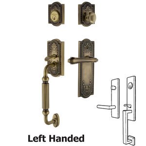 Nostalgic Warehouse 770366 Meadows Plate F Grip with Left-Handed Fleur Lever Entry Set, Backset Size: 2-3/4", Antique Brass