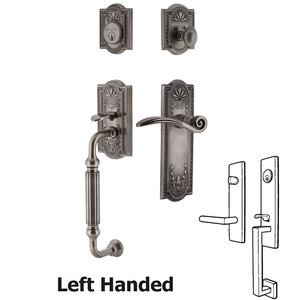 Nostalgic Warehouse 770535 Meadows Plate F Grip with Left-Handed Swan Lever Entry Set, Backset Size: 2-3/8", Antique Pewter