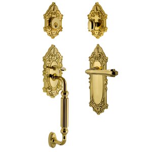 Nostalgic Warehouse Victorian Plate F Grip Entry Set Fleur Lever in Polished Brass
