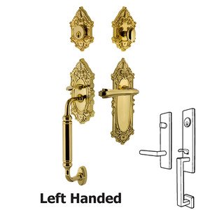 Nostalgic Warehouse 771382 Victorian Plate C Grip with Left-Handed Fleur Lever Entry Set, Backset Size: 2-3/8", Lifetime Brass