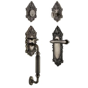 Nostalgic Warehouse 771384 Victorian Plate F Grip with Left-Handed Fleur Lever Entry Set, Backset Size: 2-3/8", Antique Pewter