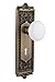 Nostalgic Warehouse, Mortise-2.25", Antique Brass Egg & Dart Plate with Keyhole White Porcelain Knob, (701972)