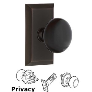 Studio - Complete Privacy Set - Studio Plate with Black Porcelain Door Knob in Timeless Bronze - Nostalgic Warehouse 708127