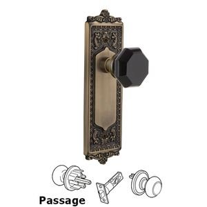Nostalgic Warehouse 720591 Egg & Dart Plate Passage Waldorf Black Door Knob in Antique Brass, 2.375