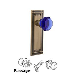 Nostalgic Warehouse 720780 Mission Plate Passage Waldorf Cobalt Door Knob in Antique Brass, 2.75