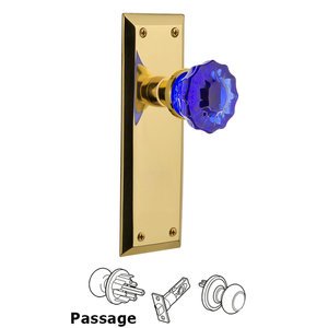 New York Collection - Nostalgic Warehouse - Passage - New York Plate Crystal Cobalt Glass Door Knob in Unlaquered Brass by Nostalgic Warehouse - 720858 | MyKnobs