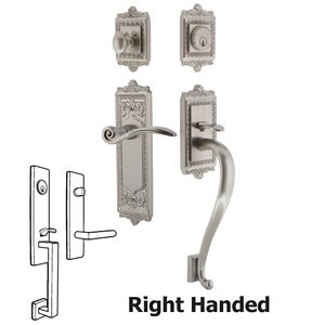 Nostalgic Warehouse 768158 Egg & Dart Plate S Grip with Right-Handed Swan Lever Entry Set, Backset Size: 2-3/4", Satin Nickel