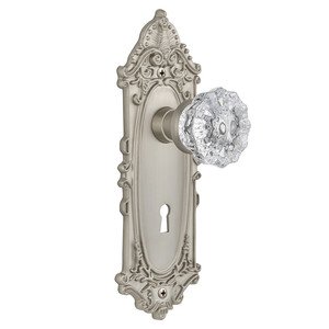 Nostalgic Warehouse Victorian Plate with Keyhole Crystal Glass Knob, Mortise - 2.25", Satin Nickel