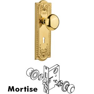Meadows Collection - Mortise Meadows Plate with New York Knob and Keyhole in Unlacquered Brass by Nostalgic Warehouse - 702368 | MyKnobs