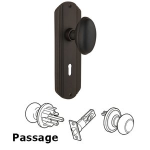 Deco Collection - Complete Passage Set With Keyhole - Deco Plate with Homestead Knob in Oil Rubbed Bronze by Nostalgic Warehouse - 705498 | MyKnobs