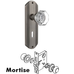 Deco Collection - Complete Mortise Lockset - Deco Plate with Waldorf Knob in Antique Pewter by Nostalgic Warehouse - 706512 | MyKnobs