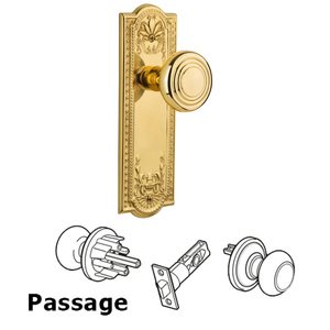 Meadows Collection - Complete Passage Set Without Keyhole - Meadows Plate with Deco Knob in Polished Brass by Nostalgic Warehouse - 707160 | MyKnobs