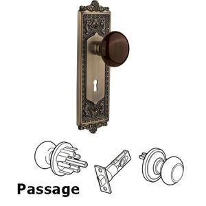 Passage Knob Egg & Dart Plate w/ Brown Porcelain Knob w/ Keyhole in Antique Brass (NW-710501)