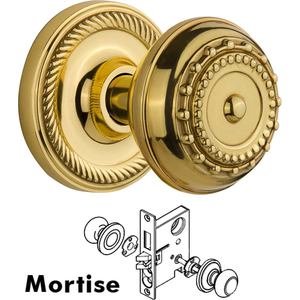 Rope Collection - Mortise Rope Rosette with Meadows Knob and Keyhole in Unlacquered Brass by Nostalgic Warehouse - 716916 | MyKnobs