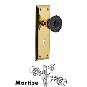 New York Collection - Nostalgic Warehouse - Mortise - New York Plate Crystal Black Glass Door Knob in Unlaquered Brass by Nostalgic Warehouse - 727499 | MyKnobs