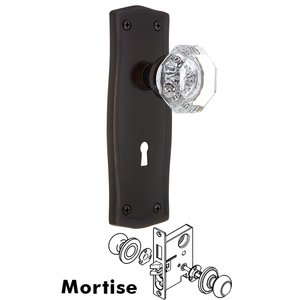 Prairie Collection - Complete Mortise Lockset with Keyhole - Prairie Plate with Waldorf Door Knob in Timeless Bronze by Nostalgic Warehouse - 708201 | MyKnobs