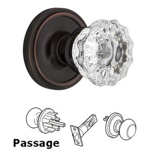 Classic Collection - Complete Passage Set - Classic Rosette with Crystal Glass Door Knob in Timeless Bronze by Nostalgic Warehouse - 708393 | MyKnobs