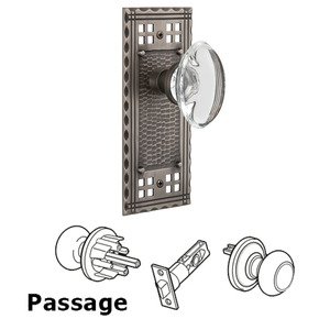 Craftsman Collection - Passage Craftsman Plate with Oval Clear Crystal Glass Door Knob in Antique Pewter by Nostalgic Warehouse - 708683 | MyKnobs