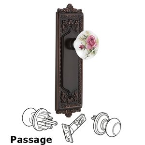 Egg & Dart Collection - Passage Egg & Dart Plate with White Rose Porcelain Door Knob in Timeless Bronze by Nostalgic Warehouse - 708971 | MyKnobs