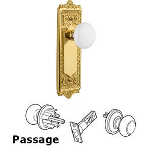 Nostalgic Warehouse Egg & Dart Plate with White Porcelain Knob, Passage - 2.75", Unlacquered Brass