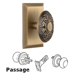 Studio Collection - Passage Studio Plate with Victorian Knob in Antique Brass by Nostalgic Warehouse - 709841 | MyKnobs