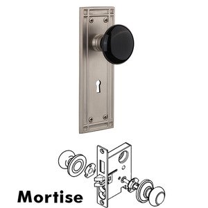 Mission Collection - Mortise Mission Plate with Black Porcelain Knob and Keyhole in Satin Nickel by Nostalgic Warehouse - 716353 | MyKnobs