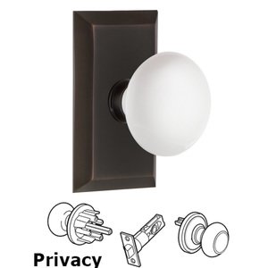 Studio - Complete Privacy Set - Studio Plate with White Porcelain Door Knob in Timeless Bronze - Nostalgic Warehouse 708143