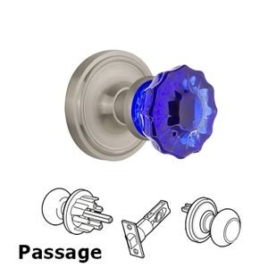 Classic Collection - Nostalgic Warehouse - Passage - Classic Rose Crystal Cobalt Glass Door Knob in Satin Nickel by Nostalgic Warehouse - 720190 | MyKnobs
