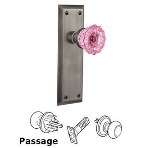 New York Collection - Nostalgic Warehouse - Passage - New York Plate Crystal Pink Glass Door Knob in Antique Pewter by Nostalgic Warehouse - 720824 | MyKnobs
