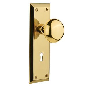 New York Collection - Passage New York Plate with Keyhole and New York Door Knob in Polished Brass by Nostalgic Warehouse - 701106 | MyKnobs