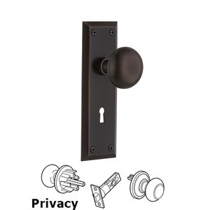 New York Collection - Complete Privacy Set with Keyhole - New York Plate with New York Door Knobs in Timeless Bronze by Nostalgic Warehouse - 703436 | MyKnobs
