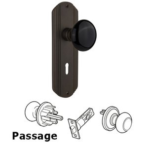 Deco Collection - Complete Passage Set With Keyhole - Deco Plate with Black Porcelain Knob in Oil Rubbed Bronze by Nostalgic Warehouse - 705678 | MyKnobs