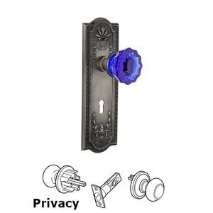 Meadows Collection - Nostalgic Warehouse - Privacy - Meadows Plate with Keyhole Crystal Cobalt Glass Door Knob in Antique Pewter by Nostalgic Warehouse - 725548 | MyKnobs
