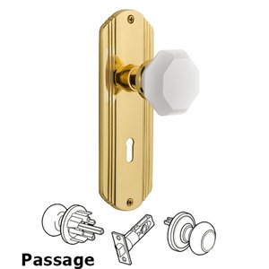Deco Collection - Passage - Deco Plate with Keyhole with Waldorf White Milk Glass Knob in Polished Brass by Nostalgic Warehouse - 748367 | MyKnobs