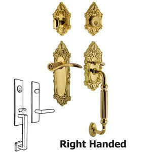 Nostalgic Warehouse 768546 Victorian Plate F Grip with Right-Handed Swan Lever Entry Set, Backset Size: 2-3/8", Lifetime Brass