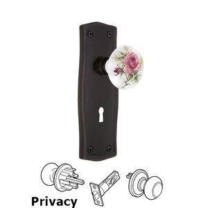 Prairie Collection - Complete Privacy Set with Keyhole - Prairie Plate with White Rose Porcelain Door Knob in Timeless Bronze by Nostalgic Warehouse - 703569 | MyKnobs