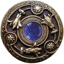 Notting Hill NHK-161-AB-BS, Jeweled Lily Knob in Antique Brass/Blue Sodalite Natural Stone, Jewel