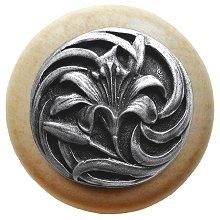 Notting Hill NHW-703N-AP, Tiger Lily Wood Knob in Antique Pewter/Natural Wood, Floral